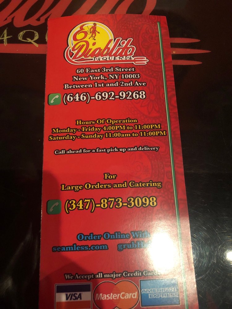 El Diablito Taqueria offers a variety of Mexican delights in a casual setting. Located at 60 E 3rd St in New York, it provides delivery, takeout, and vegan options. The breakfast menu features tempting options like the Egg and Cheese Sandwich, Avocado and Egg Sandwich, and Diablito Breakfast Burrito. For brunch, try the flavorful Huevos ala Mexicana or Tortilla y Huevos. Customers rave about the tasty chicken tacos and the must-try pulled pork tacos. The fresh ingredients and excellent guacamole impress diners, creating a vibrant and satisfying dining experience. The homemade salsas, including a standout green mild salsa, add an extra kick to dishes like nachos or enchiladas. With friendly service and delicious food at a great price point, El Diablito Taqueria is a hidden gem for Mexican cuisine lovers.