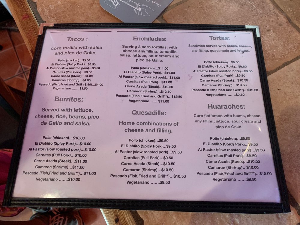 Homemade Corn Flat Bread with black beans, lettuce, sour cream, cotija cheese and a choice of filling! *Please call if you have any dietary restrictions or allergies.*